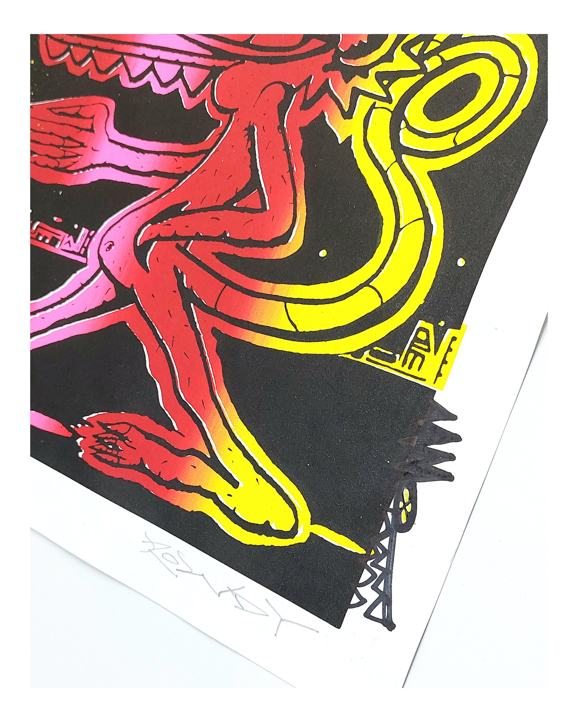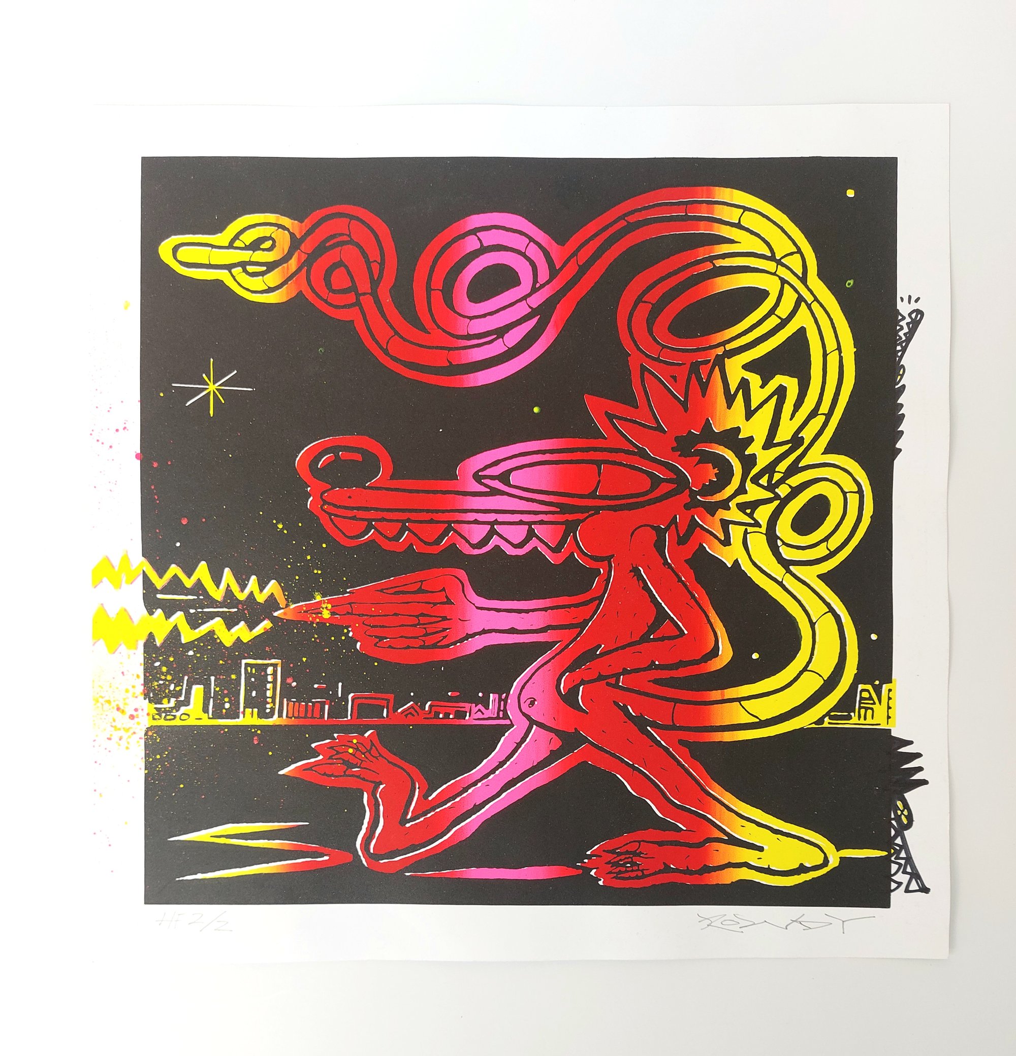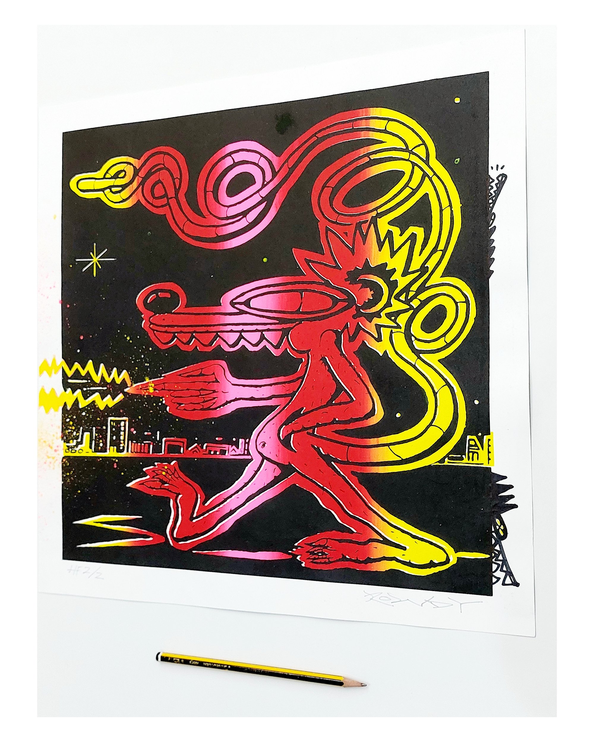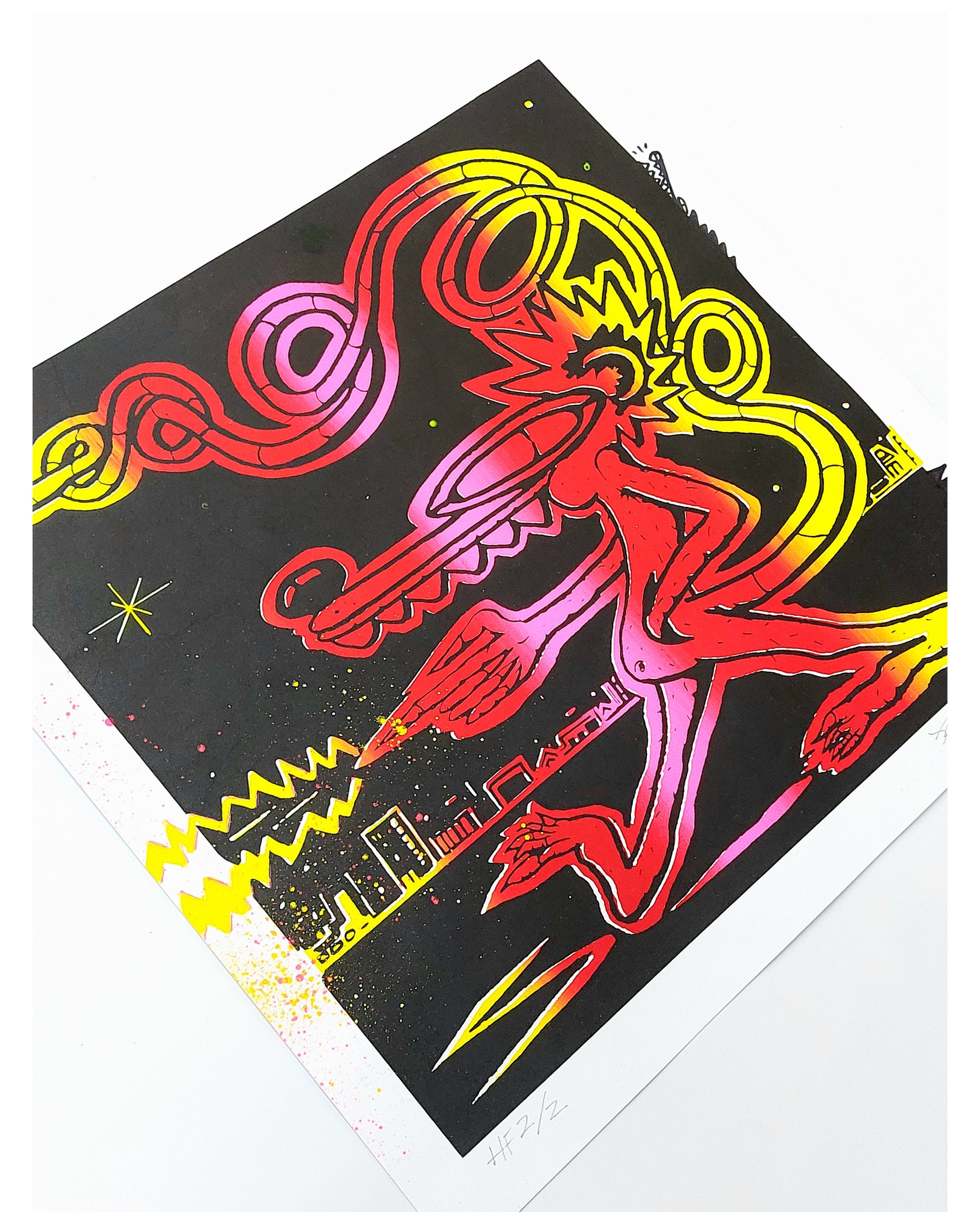 Hand Finished with Spray Paint, Acrylic & Ink