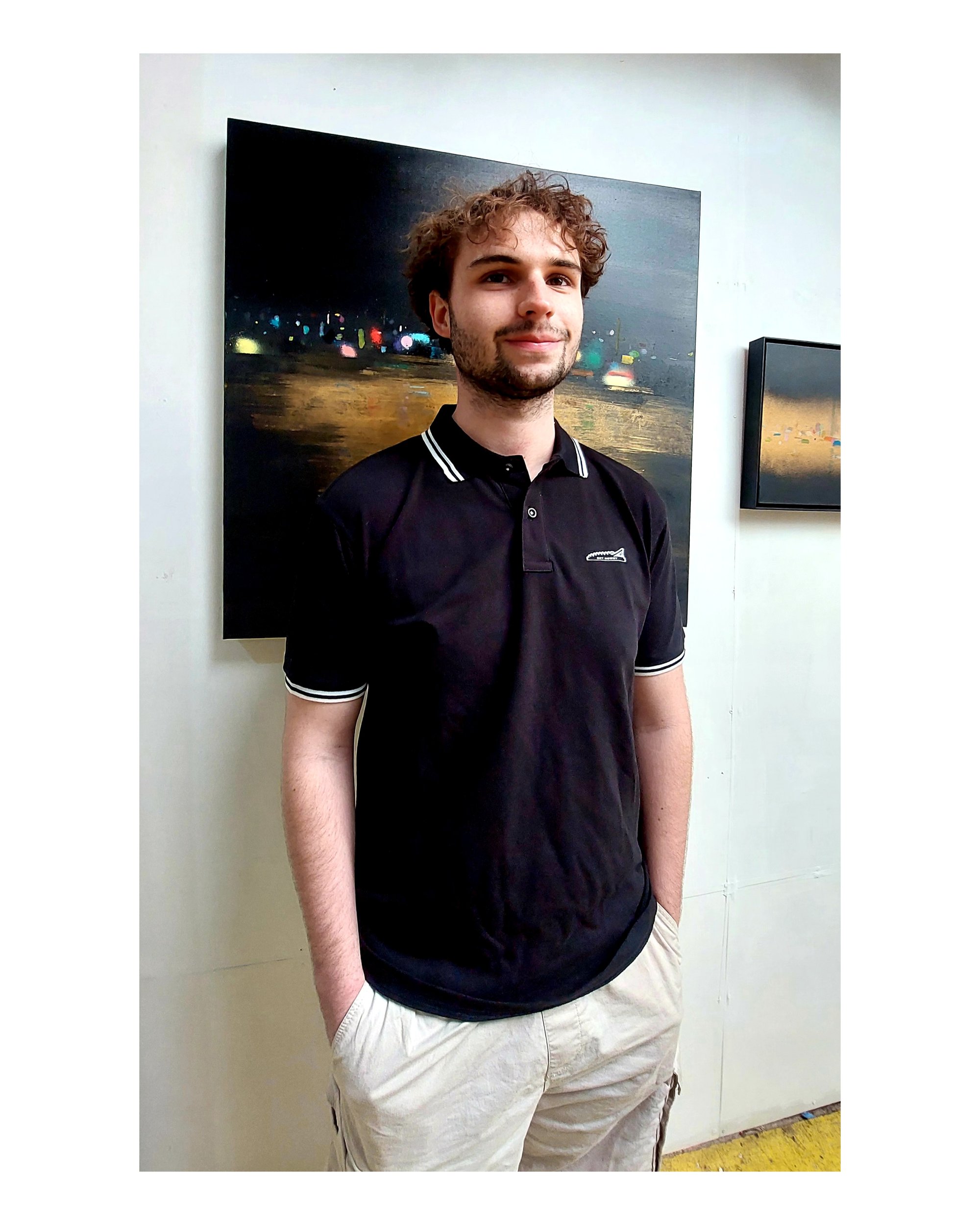 Double-stripe contrast tipping ( white ) on collar & cuffs.